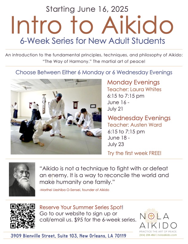 NOLA Aikido is very excited to offer a Lenten Intro to Aikido series beginning June 16th!